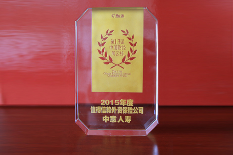 中意人壽榮獲 “2013年21世紀亞洲金融年會-21世紀保險年會”頒發(fā)的“2013年度穩(wěn)健經(jīng)營獎”,這是第四次獲獎,也是本屆唯一獲獎的合資保險公司。