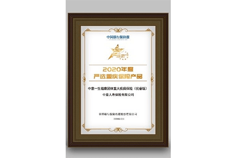中意一生??祱F體重大疾病保險(優(yōu)睿版)獲得中國銀行保險報“2020年度嚴選重疾保險產(chǎn)品”