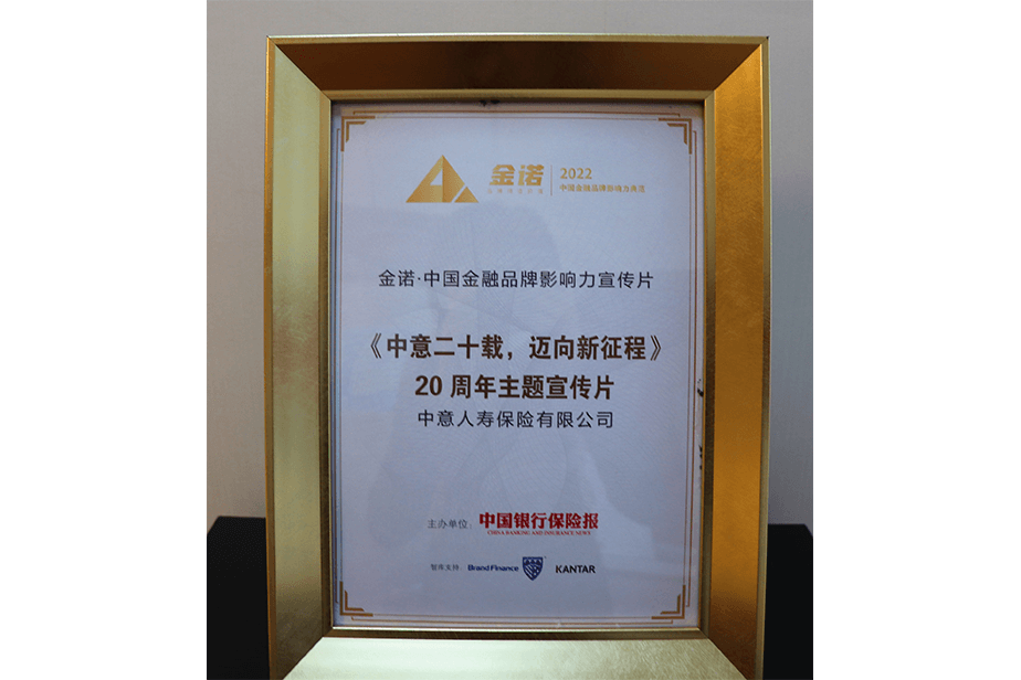 中意人壽品牌宣傳片榮獲2021年中國金融品牌優(yōu)秀宣傳片