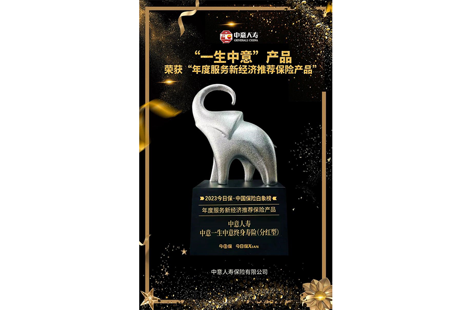 “中意一生中意終身壽險(分紅型)”榮獲“2023今日保·中國保險白象榜”“年度服務新經(jīng)濟推薦保險產(chǎn)品”獎