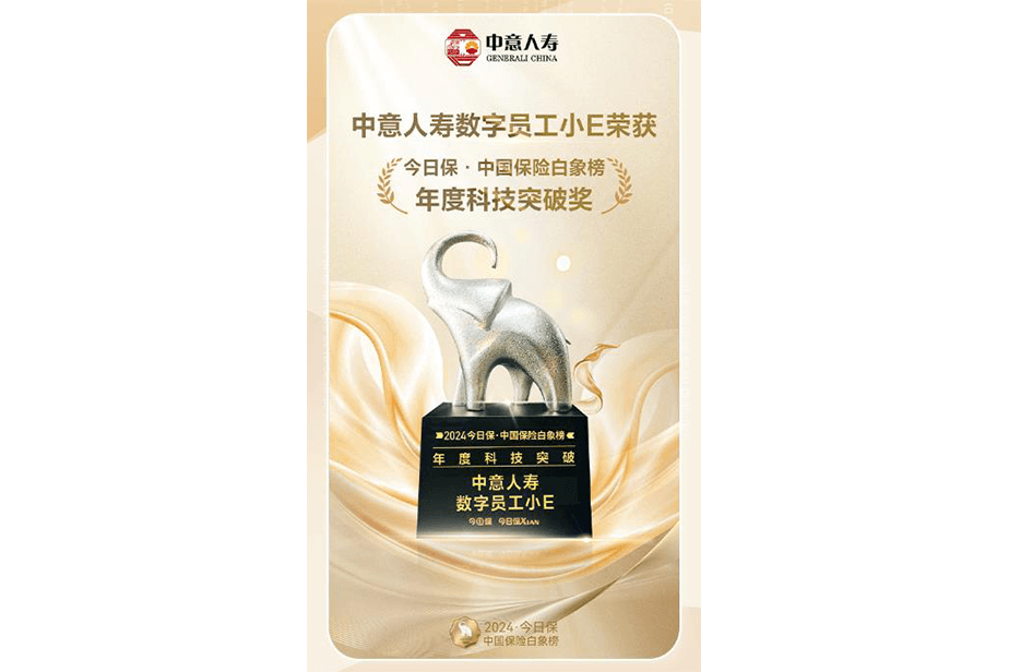 中意人壽數(shù)字員工小E榮獲今日?!ぶ袊kU白象榜年度科技突破獎