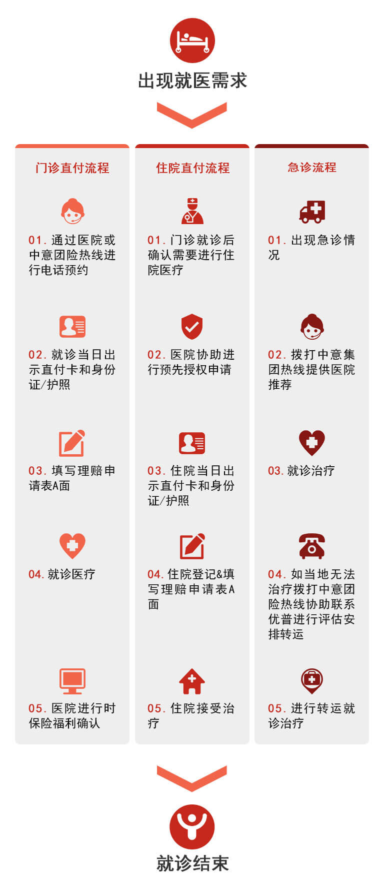 高端醫(yī)療產(chǎn)品依托歐美等發(fā)達(dá)國(guó)家醫(yī)療體系,就診流程與國(guó)內(nèi)有較大區(qū)別,如就診預(yù)約制,住院需要申請(qǐng)預(yù)授權(quán),轉(zhuǎn)診責(zé)任制等。中意人壽以客戶便利為優(yōu)先,制定如下建議流程圖供您參考。