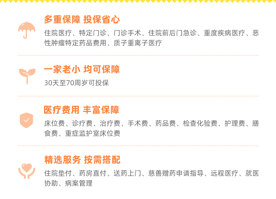 投保年齡:本合同接受的投保年齡為出生滿30天至70周歲,可續(xù)保至105周歲